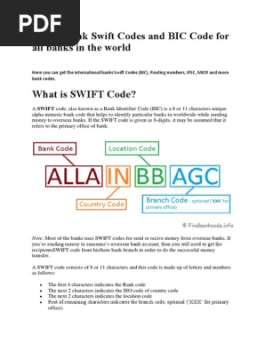 List Of Bank Swift Codes And Bic Code For All Banks In The World Pdf Written Communication Financial Technology